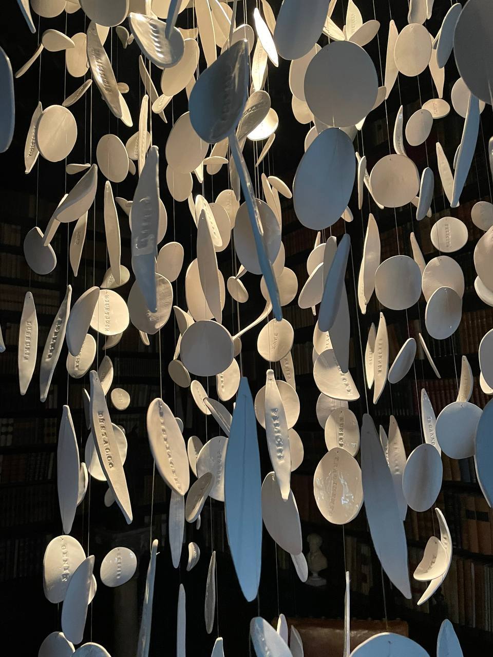 Il tema è ripreso nell’opera che Adriana Albertini ha pensato per la Fondazione Ugo Da Como: Ceramic word, un piccolo foglietto in paper clay – un’argilla impastata con la carta e che gioca a sua volta con il significato della stampa – in 50 esemplari, sul quale è impressa una libellula e un motto in latino caro a Ugo Da Como: Fac Sapias Et Liber Eris, ovvero «Fai in modo di sapere e sarai libero». Ceramic word diventa un piccolo ricordo da serbare, un messaggio ben augurante. Ci sono anche tre installazioni, grandi pannelli “Ex voto suscepto” che raccontano e restituiscono a chi guarda il senso profondo dell’esistenza. Uno dei pannelli è dedicato alla pandemia da Covid19, gli altri due raccontano la natura, richiamando alla memoria e alla vista l’attaccamento di Ugo Da Como per la sua collina verde, attorno alla quale sorge Lonato del Garda. La mostra si chiude con l’opera Wor(l)ds in petals: un’installazione luminosa e sonora che vede volteggiare una moltitudine di petali in ceramica bianca sui quali è impresso un lemma.