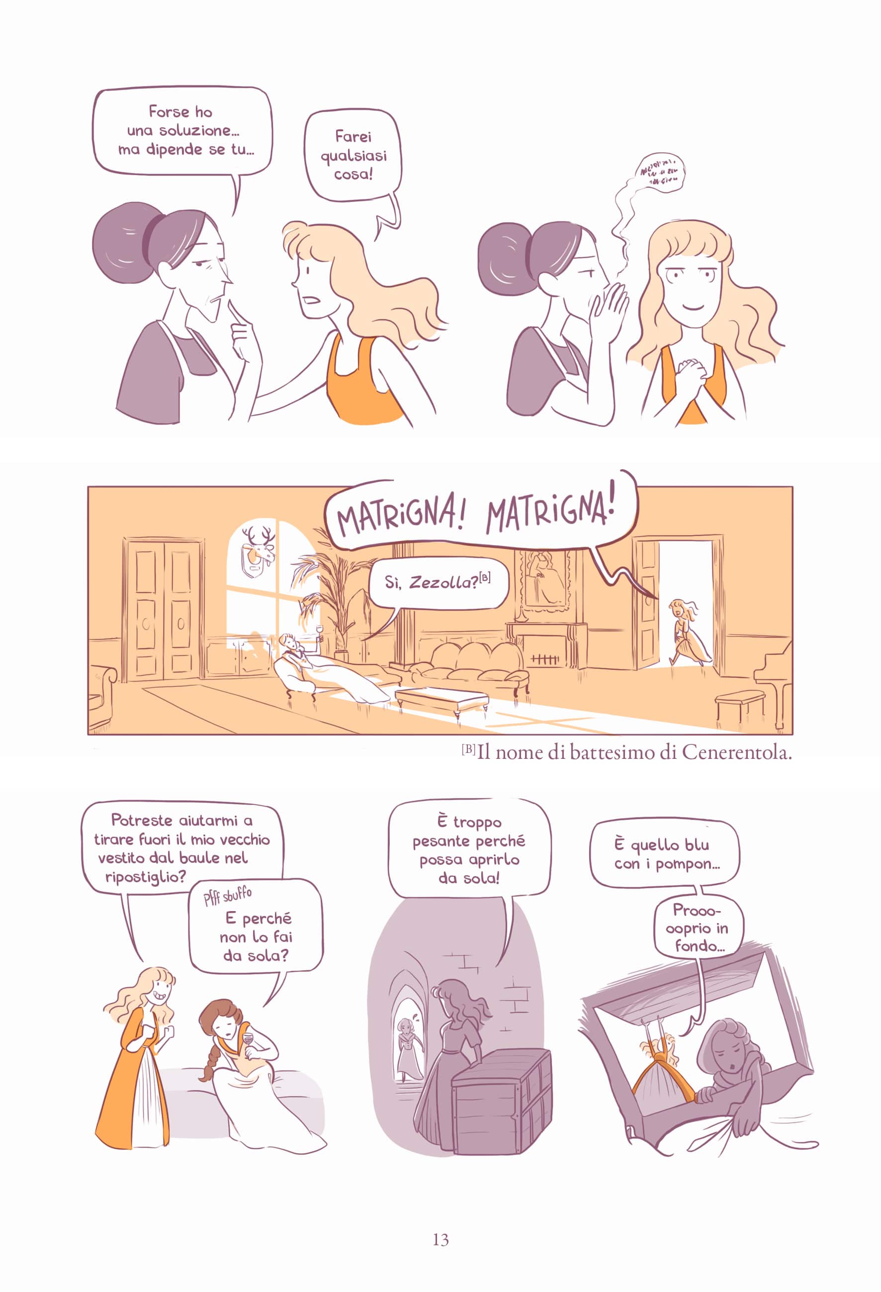 Il tratto stilizzato e umoristico stempera le tematiche e le immagini decisamente forti raccontate dalle parole di Basile ed epigoni, strappando non di rado qualche risata. Lubie si dimostra allo stesso tempo divulgatrice e narratrice di talento, mostrando la capacità di ironizzare con leggerezza senza mai sminuire argomenti serie come gli stereotipi e la violenza di genere che permeano le fiabe della tradizione. Perché alla fine le fiabe sono un prodotto della società in cui nascono, si sviluppano e vengono tramandate, riadattandosi ogni volta alla sensibilità dell’epoca, al sentire comune. E i loro protagonisti, che oggi sappiamo aver vissuto per sempre felici e contenti, un tempo morivano.