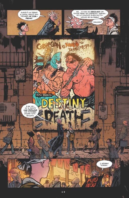 Dopo il metal con Murder Falcon, quindi, tocca al wrestling, scoperto per caso durante le lunghe notti insonni provocate dalla nascita della figlia. Ma come rendere ancora più spettacolare uno show che è fatto di dinamismo estremo e sentimenti ancora più assoluti e totalizzanti? Johnson lo fa scrivendo una appassionante e commovente saga famigliare che incrocia l’avventura fantastica e mettendoci naturalmente tutta la sua maestria alle matite, accompagnato come sempre dai colori di Mike Spicer.