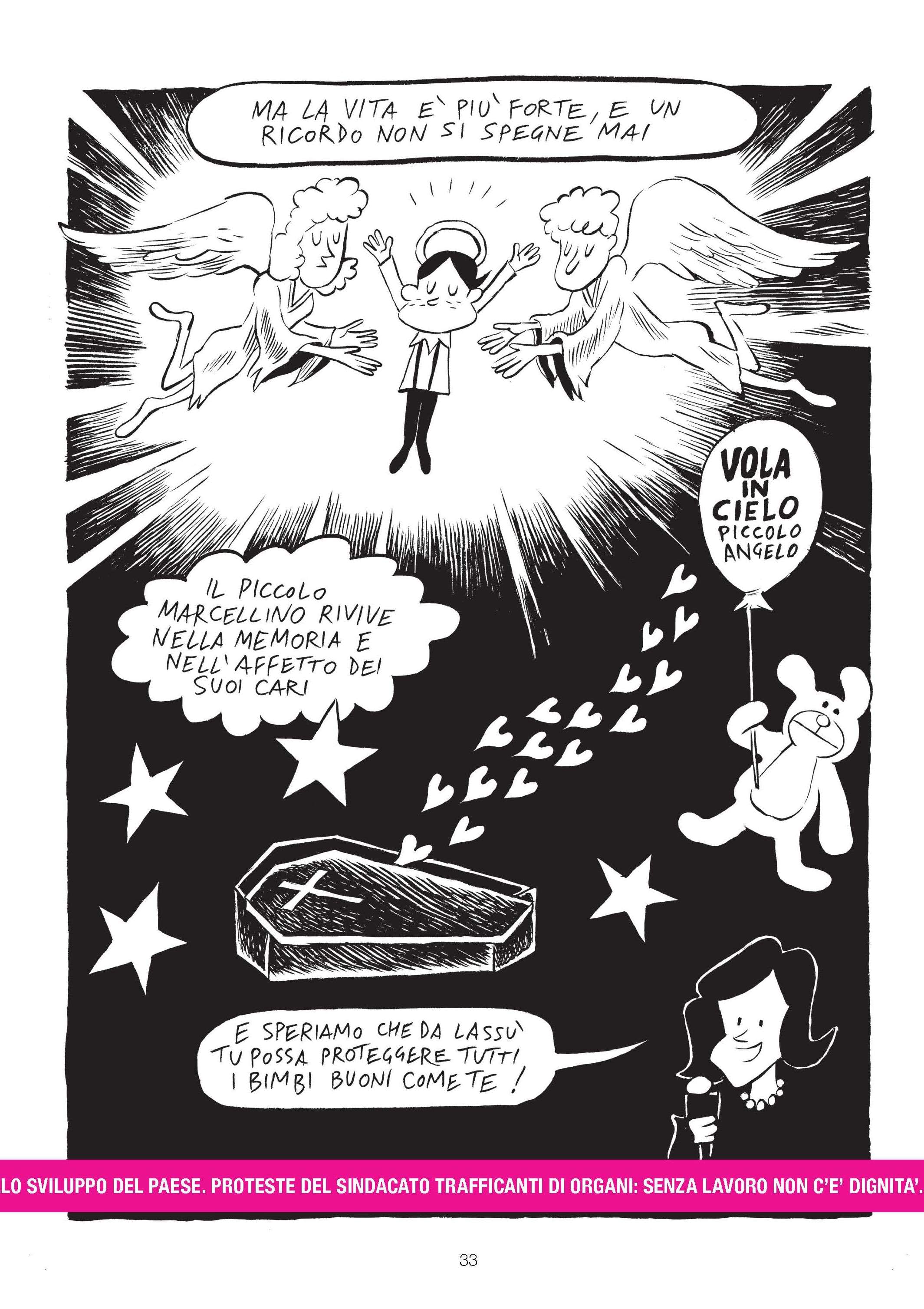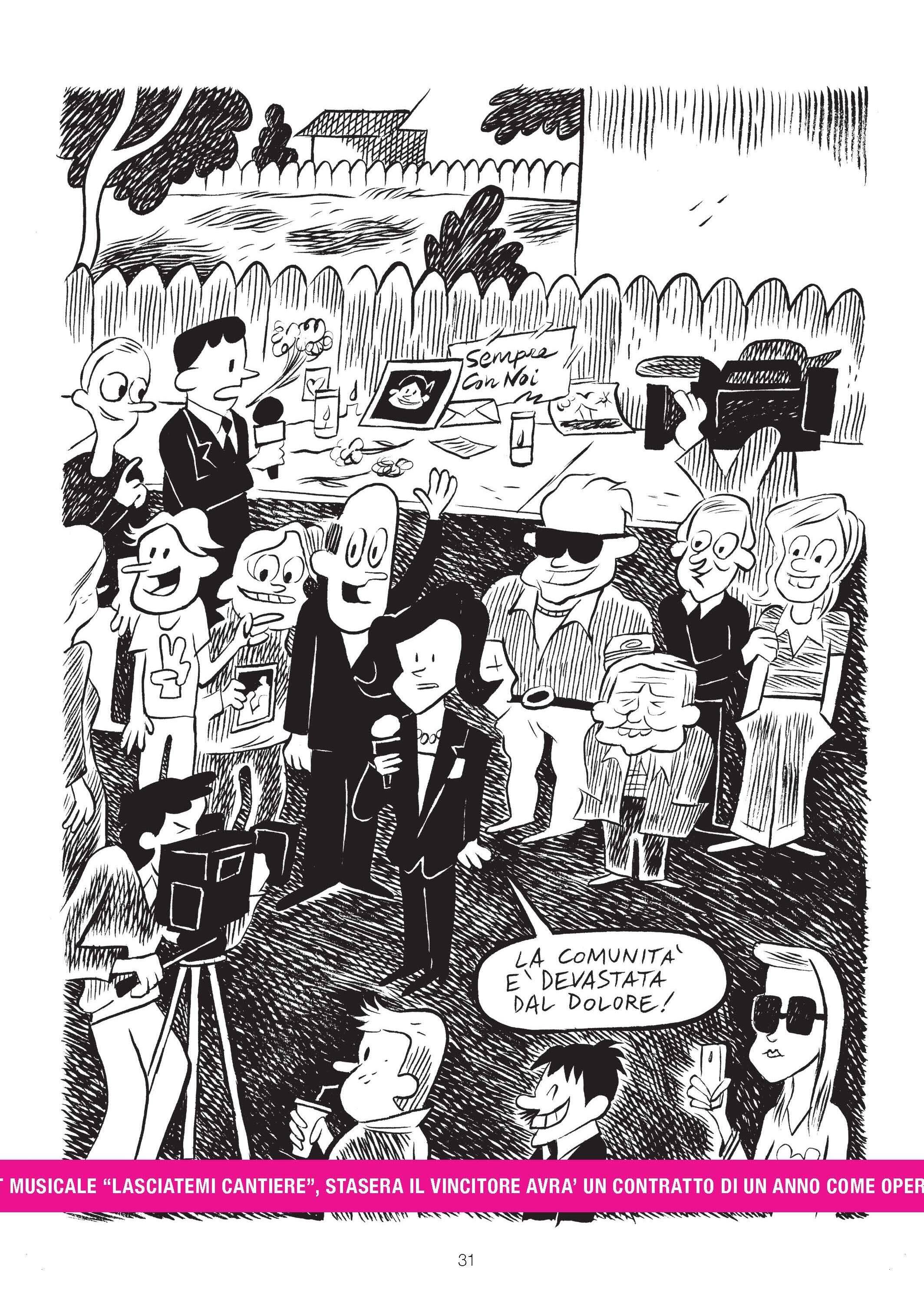 A 10 anni di distanza dalla prima pubblicazione e a due dalla scomparsa del suo autore, Coconino Press ripubblica Corpicino, graphic novel capolavoro di Tuono Pettinato, emozionante, irriverente e profonda analisi delle dinamiche di una società voyeuristica e della pornografia del dolore che riempie i media a ogni episodio di cronaca. Una nuova elegante edizione cartonata in formato 17x24 al presso di 22 euro per 144 pagine in bianco e nero che rende omaggio a uno dei più grandi esponenti della nona arte in Italia.