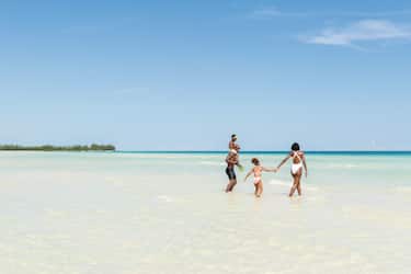 Le Exuma sono composte da oltre 365 isole e isolotti, che le rendono un paradiso di sabbia e acque turchesi da esplorare con lo spirito avventuroso dei bambini. Prendere una barca qui è un must: le distese infinite di sabbia candida e l’acqua bassa sono perfette per il divertimento dei piccoli e il relax dei più grandi: nuotate indisturbati tra le tartarughe a Hoopers Bay, cercate sand dollars (una specie di conchiglie tonde con sopra “disegnato” un fiore – naturalmente vanno lasciate lì!) tra un giro di altalena in acqua e l’altro a Cocoplum Beach, e infine, Stocking Island per vedere razze e stelle marine. Non mancate di prevedere una sosta per incontrare gli iconici maialini, un’altra per una nuotata con gli squali nutrice a Compass Cay e un’immersione nella Grotta di Thunderball resa famosa dal film ‘Agente 007 - Thunderball (Operazione tuono)’.
