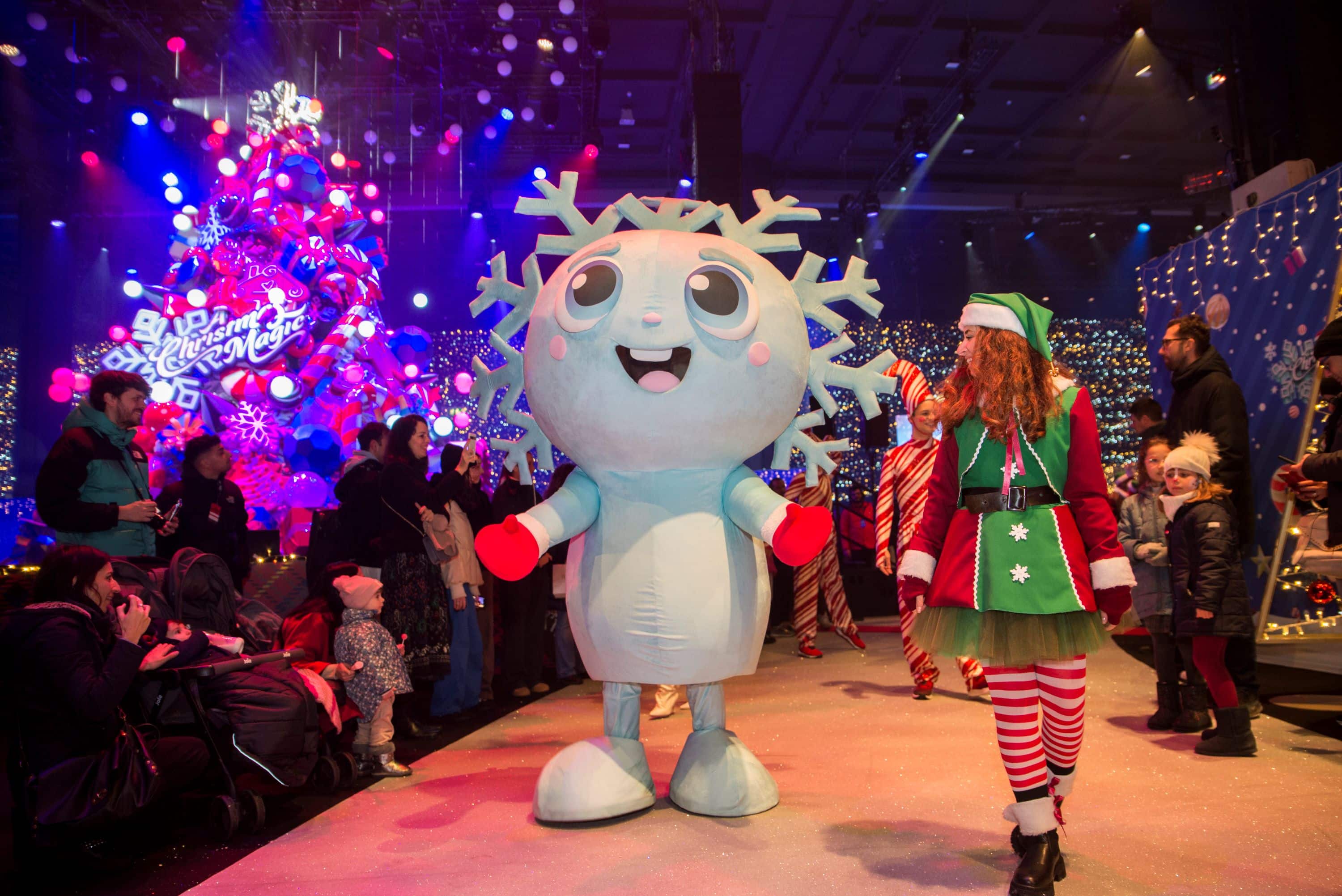 A rendere questo luogo ancora più caldo ed empatico un cast residente di primo livello, oltre a un Babbo Natale sempre presente, una schiera di aiutanti elfi in abiti scintillanti e una mascotte a sorpresa, Fiocco, un vero e proprio personaggio di ispirazione fiabesca, un soffice fiocco di neve dallo sguardo tenero, nato da un'esplosione di creatività e fantasia: si narra che nel corso di una robusta nevicata, un fiocco di neve si fosse posato sulla barba di Babbo Natale, quando uno starnuto lo fece volare sul naso di un elfo e così prese vita. In poco tempo, Fiocco e Babbo Natale diventarono grandi amici, e proprio quest’ultimo gli raccontò il suo sogno, dare vita a un grande villaggio interamente dedicato al periodo più magico dell’anno. Un sogno che Fiocco, realizzò in una sola notte con l’aiuto degli elfi, e così nacque A Christmas Magic!