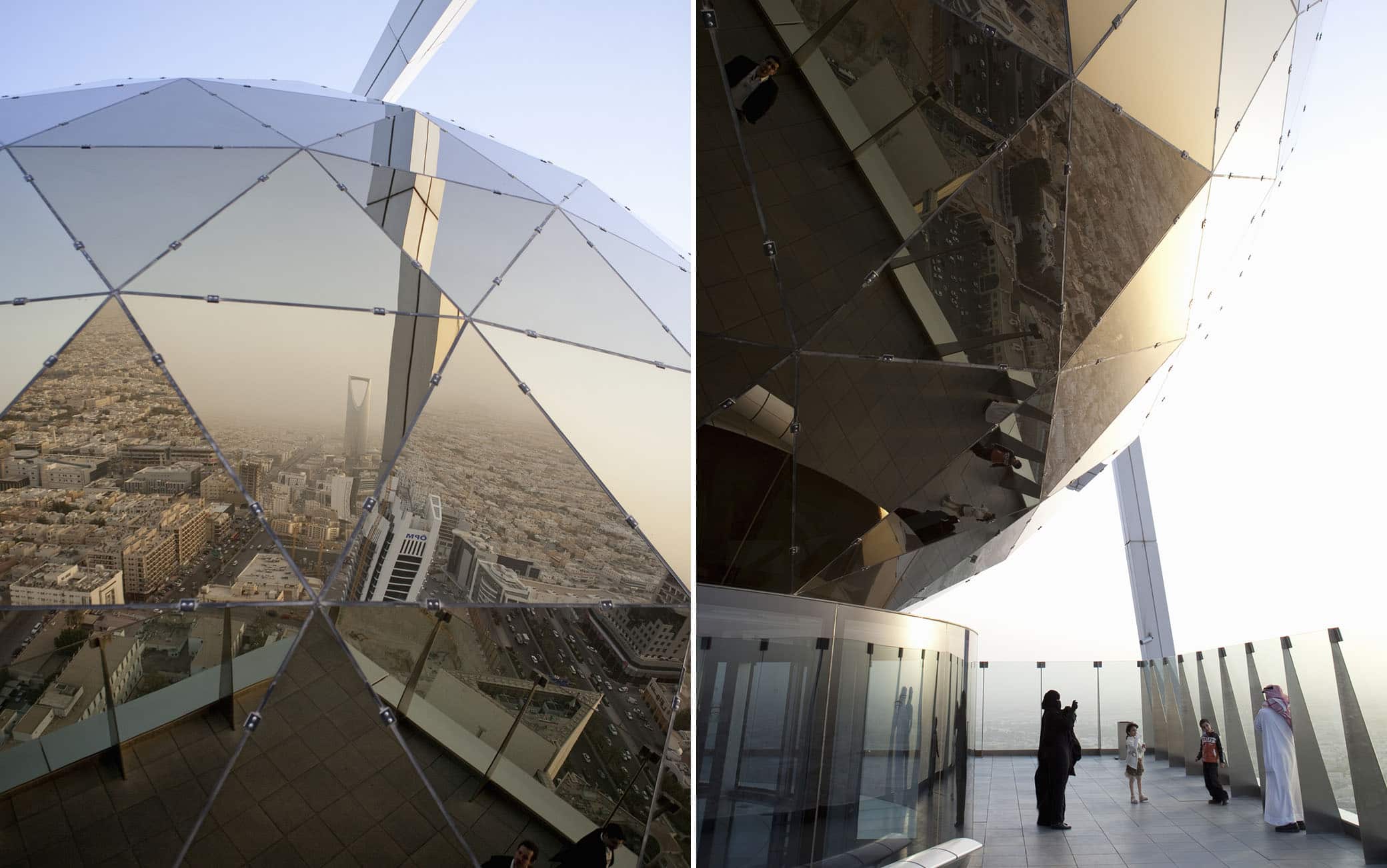 La modernità della sua Capitale si rivela nel suo skyline. A cominciare dalla Kingdom Centre Tower, icona architettonica di 320 metri che offre una vista panoramica mozzafiato sulla città. Il proprietario è al-Walid bin Talal bin Abd al-Aziz Al Saud, principe della famiglia reale saudita. L’edificio ospita la sede della Kingdom Holding Company e, nel 2002, ha vinto il premio Emporis Skyscarper Award come "miglior grattacielo al mondo per il design". La struttura è caratterizzata da un ponte di vetro e acciaio di 300 tonnellate che collega le due torri. Al 99esimo piano troviamo lo Sky Bridge. “Il Principe ha voluto costruire un’icona come la Torre Eiffel di Parigi o la Statua della Libertà di New York”, ha dichiarato nel 1998 Sabah Sammakiah, il project manager del Kingdom Centre. “Qualcosa che – nell’instante in cui viene osservata – dica a chiunque che si trova a Riad”.