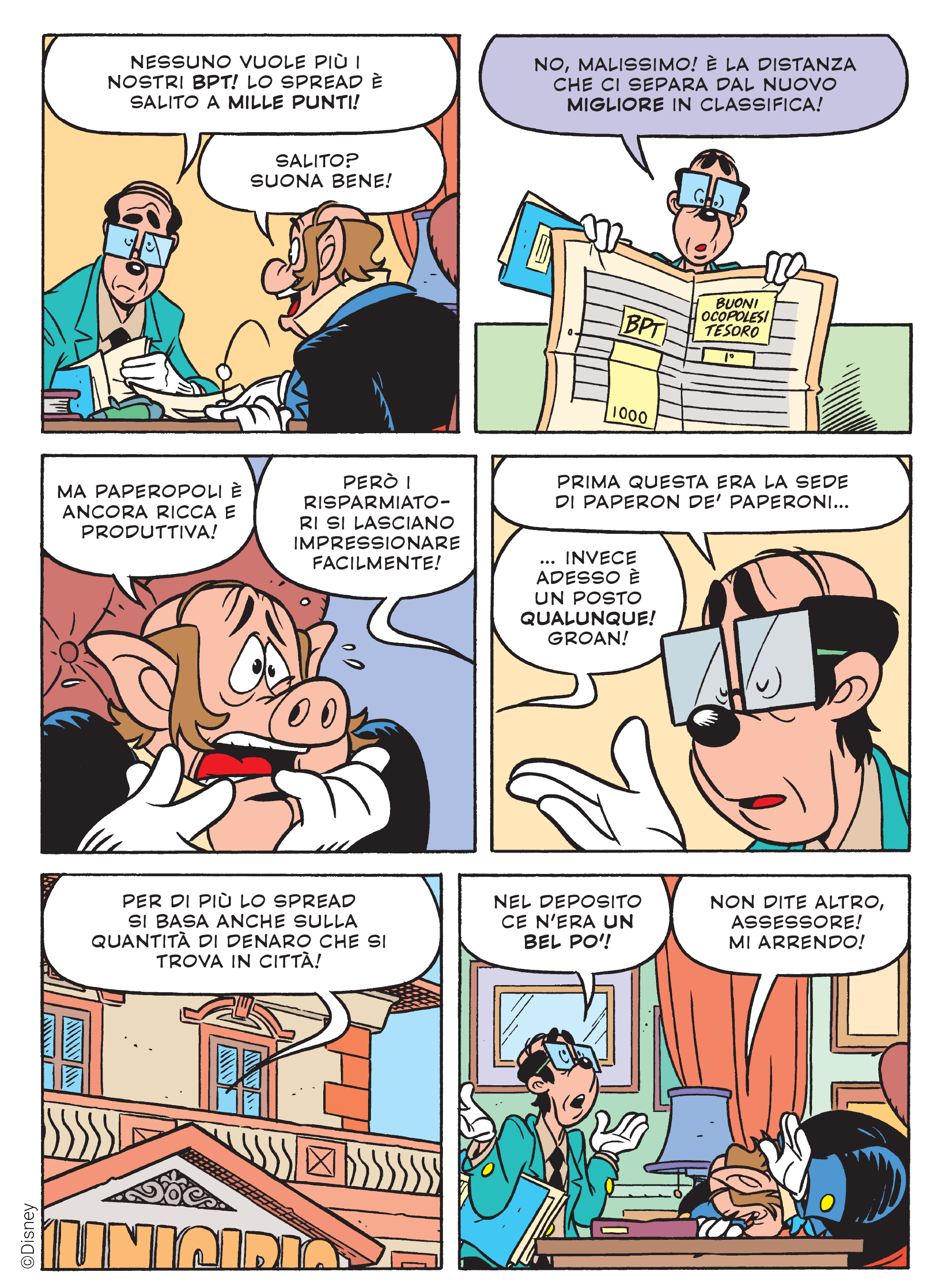 Per ogni uscita, un fumetto disneyano a corredo: ad esempio nel primo numero – intitolato non a caso ABC: concetti di base – viene riproposta la storia Archimede apprendista affarista (2006) in cui, su testi di Giorgio Salati e disegni di Salvatore Deiana, il geniale (ma generoso e sprovveduto) inventore prende appunto le prime lezioni di gestione del proprio patrimonio personale nientemeno che dal Papero più ricco del mondo. Ci identifichiamo in lui, una volta tanto, mentre prende appunti!