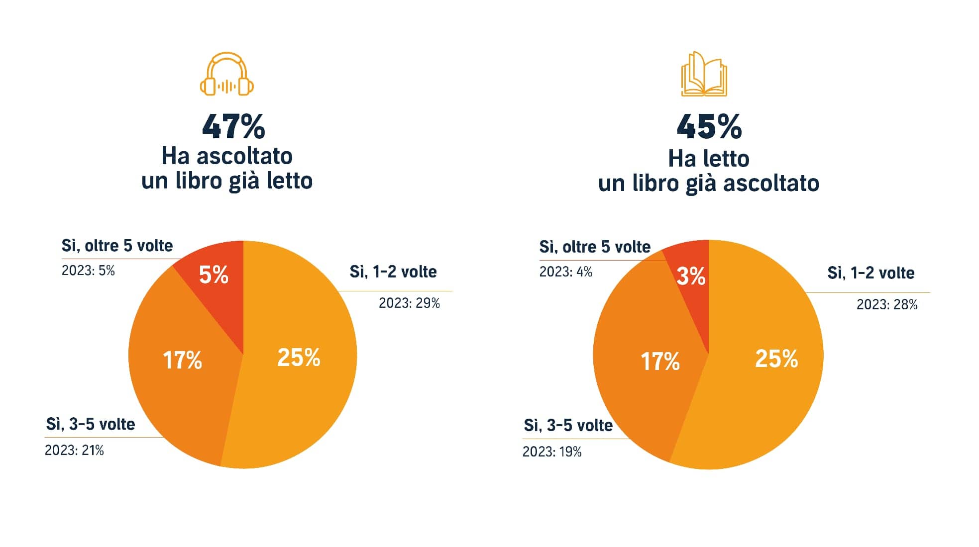Ma cosa porta milioni di utenti a fruire dei contenuti di Audible? Svago ed evasione sono la risposta. Per il 45% degli intervistati il desiderio di relax è ciò che spinge all’ascolto dei libri in cuffia. La voglia di evasione dalla quotidianità segue con il 30%. Per la maggior parte degli utenti risulta essere anche un valido modo per intrattenersi mentre si fanno altre cose (57%), combattere la “screen fatigue” (53%) ed evitare la noia (51%). Gli audiolibri sono poi degli insostituibili alleati contro lo stress (48%) e la solitudine (46%) e agevolano la socializzazione. Questo perché diventano anche un buon modo per rompere il ghiaccio e dare inizio a una conversazione. Nonostante il tema legato alla socialità, per la maggior parte degli intervistati, il 70%, il luogo preferito per l’ascolto di audiolibri rimane anche nel 2024 la propria abitazione. Cresce però al 47% la percentuale di coloro che ne fanno uso nei momenti di commuting, che sia in macchina, sui mezzi pubblici o camminando. Tutti elementi che differenziano la fruizione di audiolibri e cartacei ma che non creano concorrenza tra i due, anzi aumentano la sinergia e la complementarità: una persona su due (il 47% degli italiani a campione) ha ascoltato un libro già letto, così come quasi altrettanti (il 45%) dichiara di aver letto un libro già ascoltato.