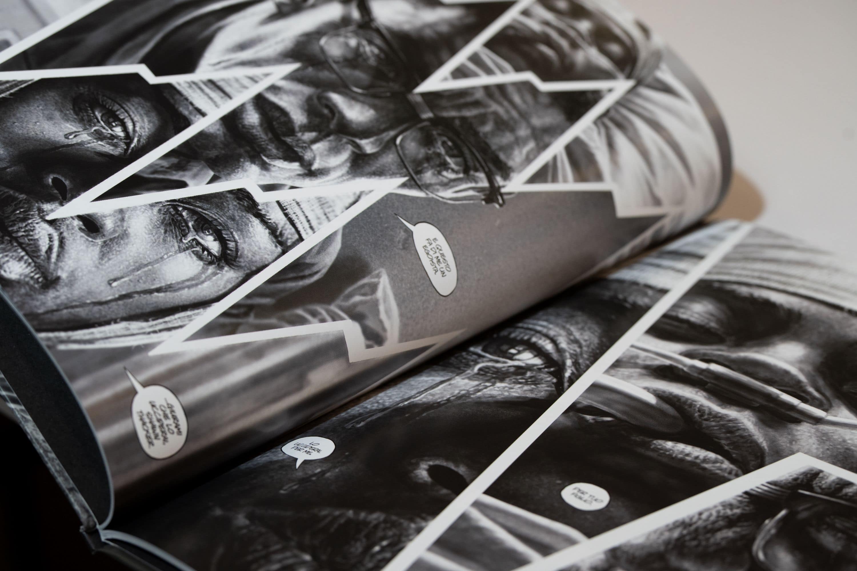 Molto bello. Lui viene dal mondo del cinema ma ha una grossa conoscenza di fumetti, aveva un modo di scrivere molto facilmente trasportabile al fumetto. Non c’è stata una fase in cui abbiamo dovuto imparare come adattare la sua scrittura, è venuto tutto abbastanza facile. E poi è una persona molto aperta, è stato facile collaborare con lui.