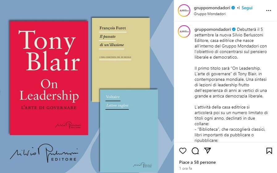 La nuova casa editrice, che nasce all'interno del Gruppo Mondadori con l'intento di concentrarsi sul pensiero liberale e democratico, debutterà il 5 settembre con un saggio dell'ex premier Gb sull'arte di governare in contemporanea mondiale
