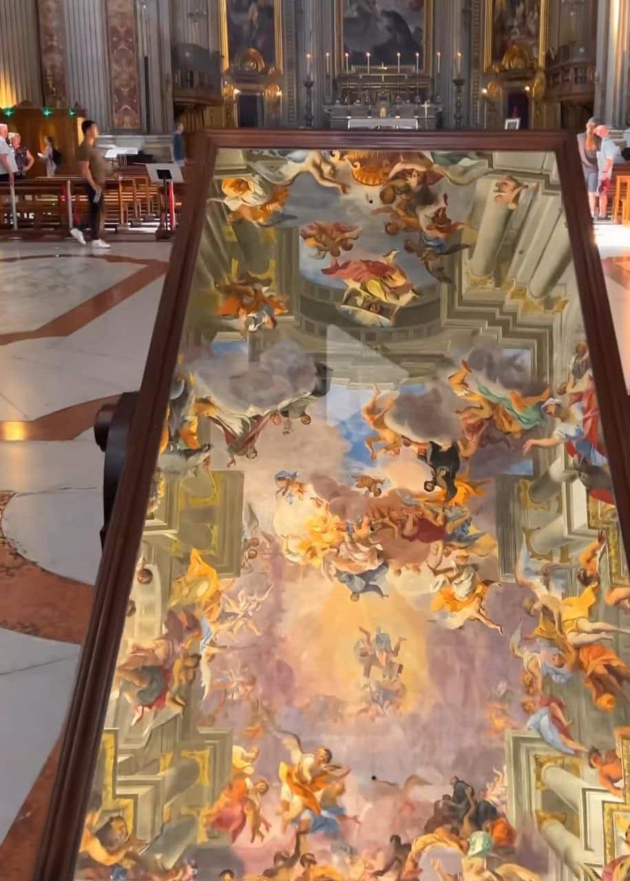 Antichi affreschi e riflessi negli specchi nella cornice straordinaria della chiesa di Sant’Ignazio di Loyola a Roma, diventata meta ambita dei giovanissimi per i trend su TikTok. Da qualche tempo sul social sono diventati virali gli scatti e i video dei turisti che, davanti allo specchio appositamente posizionato al centro della struttura, possono scattarsi selfie con uno sfondo da togliere il fiato. E il passaparola sui social è ormai sempre più diffuso, tanto da creare lunghissime file per l’ingresso nella chiesa romana.