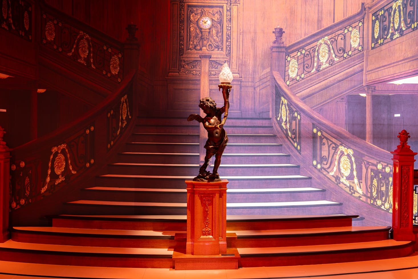 Non solo una straordinaria esperienza multimediale immersiva, ma un vero e proprio viaggio nel tempo: fra impattanti riproduzioni sceniche, oggetti autentici, memorabilia e visioni tridimensionali a bordo di quella che fu definita la nave più grande del mondo, soprannominata “l’inaffondabile”. Fra gli stupefacenti reperti in mostra documenti della costruzione del Titanic, ma anche i biglietti d’imbarco della White Star Line, sua società di navigazione: oggi, per un posto in prima classe, si sarebbero spesi circa 60mila euro. E poi oggettistica dell'equipaggio (dal cappello del capitano a uniformi e accessori dei marinai) fino a splendidi elementi del noto Scalone centrale, come uno degli angeli decorativi ispirati alla reggia di Versailles. Seguono preziose suppellettili delle sale da pranzo e parti del relitto individuate dalla Nave Minia che, incaricata di trovare i dispersi, recuperò molte parti di legno degli arredi, compresi gli scalini dello Scalone centrale.