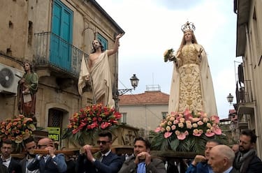 Per la settima e terzultima tappa del nostro viaggio in Italia alla scoperta delle sue manifestazioni pasquali più suggestive arriviamo in Calabria per assistere all’Affruntata, evento che simboleggia il ricongiungimento della Vergine con il figlio Risorto. Una delle località che mantiene viva questa usanza è Bagnara Calabra, in provincia di Reggio Calabria. Qui il giorno di Pasqua, la statua del Cristo Risorto esce dalla Chiesa del Rosario seguita dalla statua della Madonna, vestita in segno di lutto. Le due statue si incontrano in piazza, in un momento solenne che segna l’inizio della festa. Il gesto simbolico di rimuovere il velo nero dalla Madonna, accompagnato dagli applausi dei fedeli, rende l’Affruntata un rito di grande impatto emotivo.