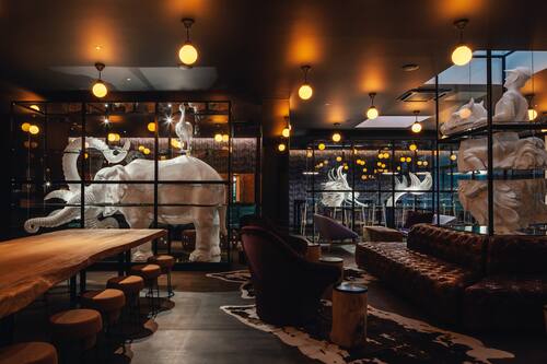 Situato nell'iconico edificio della Royal Bank di Montreal, costruito tra il 1926 e il 1928 per la Royal Bank of Canada dallo studio di architettura newyorkese York & Sawyer, il CREW COLLECTIVE & CAFE' è stato riprogettato dall'architetto Henri Cleinge. Con soffitti a volta alti 15 metri e dettagli opulenti, il carattere di questo edificio storico è stato accuratamente preservato