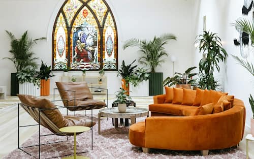 All'interno sono state create accoglienti aree salotto con divani arancioni e sedie dalla struttura in acciaio. In segno di rispetto verso il passato religioso dell'edificio, sono stati usati lunghi tavoli comuni in stile refettorio