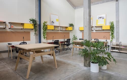 Con una superficie di 2.300 metri quadrati, lo spazio (all'angolo tra Broadway e 3rd Street, nello storico quartiere dei teatri) offre aree di lavoro comuni, studi privati, sale conferenze, cabine telefoniche, lounge, una sala benessere e un bar. L'avamposto occupa l'intero secondo piano del Bradbury Building, il primo edificio commerciale del centro di Los Angeles, apparso in film come Blade Runner e in diversi programmi televisivi e musicali