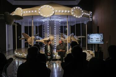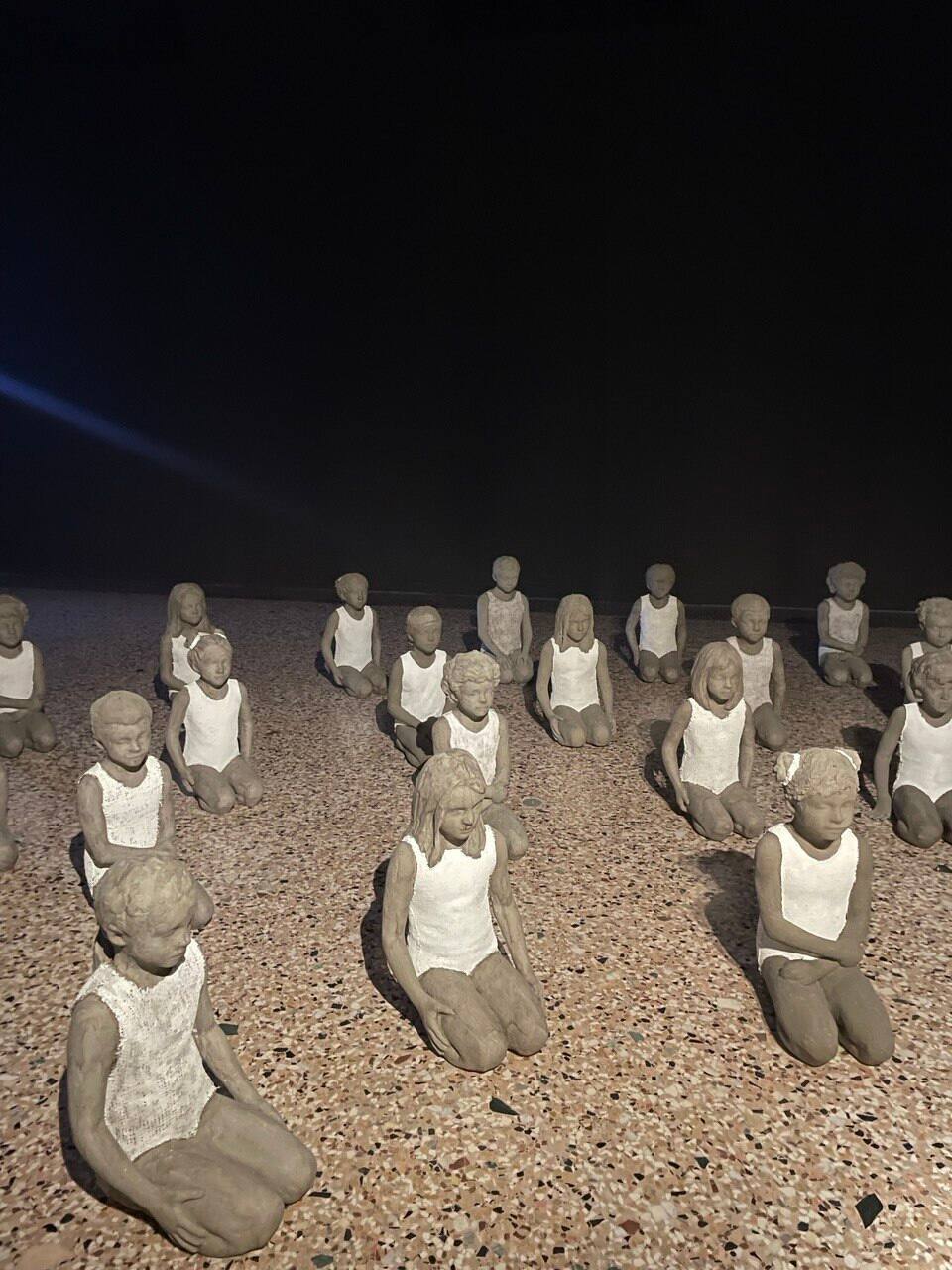 I bambini sono al centro della personale di Berruti, piemontese classe 1977, che per le sue opere utilizza la tecnica dell'affresco, la scultura e la video animazione per creare immagini essenziali ispirate al mondo sospeso dell'infanzia: quel mondo in cui tutto deve ancora avvenire. Con sculture monumentali, installazioni, video e la celebre "giostra di Nina" sulla quale gli spettatori possono salire, l'artista di Alba conduce i visitatori in un percorso che partendo dall’infanzia tocca temi universali che generano spazi di riflessione profonda, capaci di parlare a grandi e piccoli. I suoi “bambini” diventano simboli collettivi che mostrano l’infanzia come luogo di appartenenza, dove tutti siamo stati, ma anche di futuro possibile e ancora da scrivere. Tra tutte, particolarmente emozionante l'opera "Nel nome del padre" che mostra le sculture di 42 bambini che hanno lo stesso volto e guardano nella stessa direzione: ognuno di loro rappresenta uno dei conflitti in corso in questo momento nel mondo.