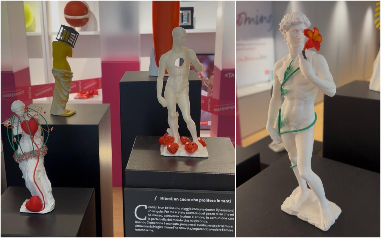 Le cicatrici, scolpite sui simboli classici del bello, come il David di Michelangelo e la Venere di Milo, diventano dunque metafora di ciò che rende unico ognuno di noi.