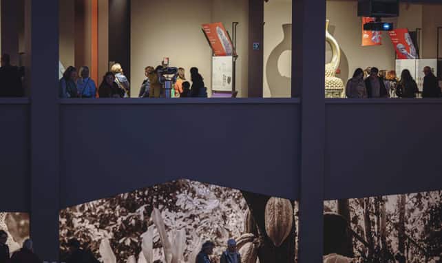 L’ingresso principale porta il visitatore a scoprire in primis, al piano superiore del Museo, la geografia e la storia del cacao. Sovrastati da un cielo animato, per una superficie totale di 400 m2, che riproduce tempi, suoni e racconti di una foresta equatoriale, si scopre dove e quando il cacao “nasce”. L’evoluzione del cacao parte dal Sud America e giunge, tra rappresentazioni concrete e interazioni digitali firmate dall’artista Manuel Gardina, fino al trasporto delle fave in Europa e al racconto dell’evoluzione del cioccolato nei paesi del Vecchio Continente. Qui si scoprono dettagli passati negli anni in sordina, come la figura della cioccolataia o l’abitudine degli aristocratici a sorseggiare cioccolata calda al posto del tè.
