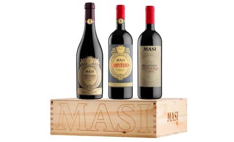 - Per chi vuole regalare un cofanetto di vini di grande tradizione, questa selezione “Masi Iconici” racchiude tre etichette simbolo della cantina: l’Amarone Classico Costasera 2020, il Rosso Verona IGT Campofiorin 2022 e il Valpolicella Classico Bonacosta 2024. Le tre bottiglie sono presentate in un’elegante confezione in legno. Il set è disponibile su Amazon al prezzo di 69,96 euro.
