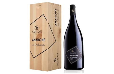 - Un’idea per chi ama i rossi veneti è questa Magnum di Amarone della Valpolicella DOCG 2020 della Casa Vinicola Sartori, proposta in confezione regalo con cassa in legno. Il vino presenta un colore rosso intenso con riflessi granati, note di frutta cotta e spezie, e un gusto pieno e vellutato. È disponibile su Amazon al prezzo di 39,90 euro.