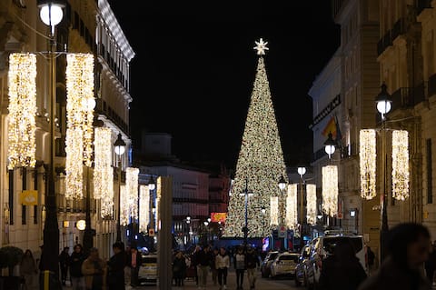 - A Madrid la Puerta del Sol si anima grazie al grande albero natalizio illuminato. La grande caratteristica riguarda l'illuminazione led efficiente, coerente con l’impegno cittadino verso un Natale più sostenibile. Attorno all’albero, il centro della città è caratterizzato da luci, decorazioni e addobbi.