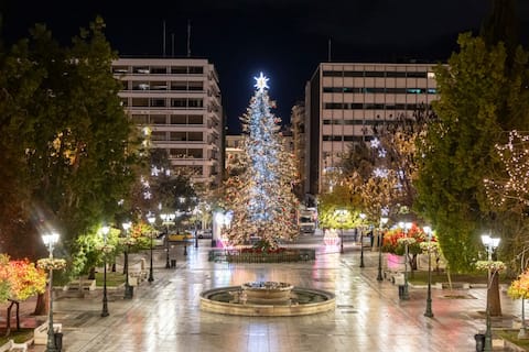 - Anche quest'anno Atene inaugura le festività con il tradizionale abete in Piazza Syntagma. Alto 18 metri, l'albero è decorato con migliaia di luci led, ghirlande e decori scintillanti. A daccompagnare la cerimonia di accensione, una parata orchestrale e un concerto dal vivo. Oltre al grande albero natalizio, l’intero centro cittadino è addobbato con luci, archi, stelle e installazioni creando un’atmosfera vivace e accogliente.