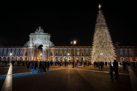 - Anche la capitale portoghese si accende per le festività natalizie. Al centro di Praça do Comércio è stato allestito un abete di circa 30 metri, impreziosito da migliaia di luci led. Ad accompagnare la cerimonia di accensione, un concerto dal vivo con la cantante di fado Sara Correia e uno spettacolo di fuochi d’artificio. Per le festività, l'intera città è decorata con luminarie a basso consumo che coprono circa 182 km di strade.