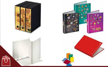 Raccoglie fogli e buste in formato A4, ed è dotato di copertina personalizzabile, il modello con finitura in pelle. Prezzo € 9,00