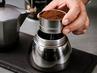 "La si fa assestare, battendo il filtro, lasciando che il caffè si adagi in modo naturale. La quantità dipende dalla struttura della moka. Per una caffettiera da 3 tazze servono indicativamente da 15 a 18 grammi di caffè macinato” (Foto: Lavazza)