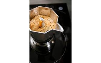 Il caffè va servito dopo aver mescolato il liquido nella parte superiore con l'aiuto di un cucchiaino. “Il primo caffè che fuoriesce è molto concentrato, dà un prodotto con una maggiore acidità, è più corposo, mentre quello della fase finale è più scarico, con possibili note più amare. Per questo motivo è necessario bilanciare queste parti, mescolando, per creare tazze omogenee”