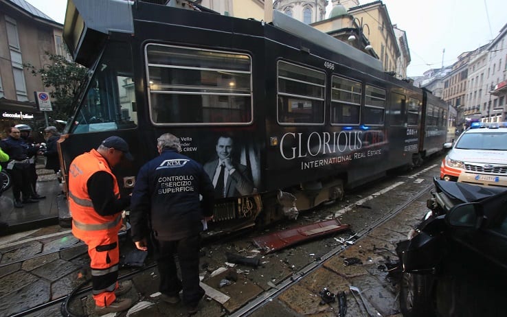 È successo all’altezza di piazza San Giorgio. Feriti lievemente una mamma 43enne e il figlio di 10 anni a bordo della vettura. Sul posto il personale medico del 118 e la polizia locale. Atm comunica deviazioni per le linee tranviarie 2, 3 e 14