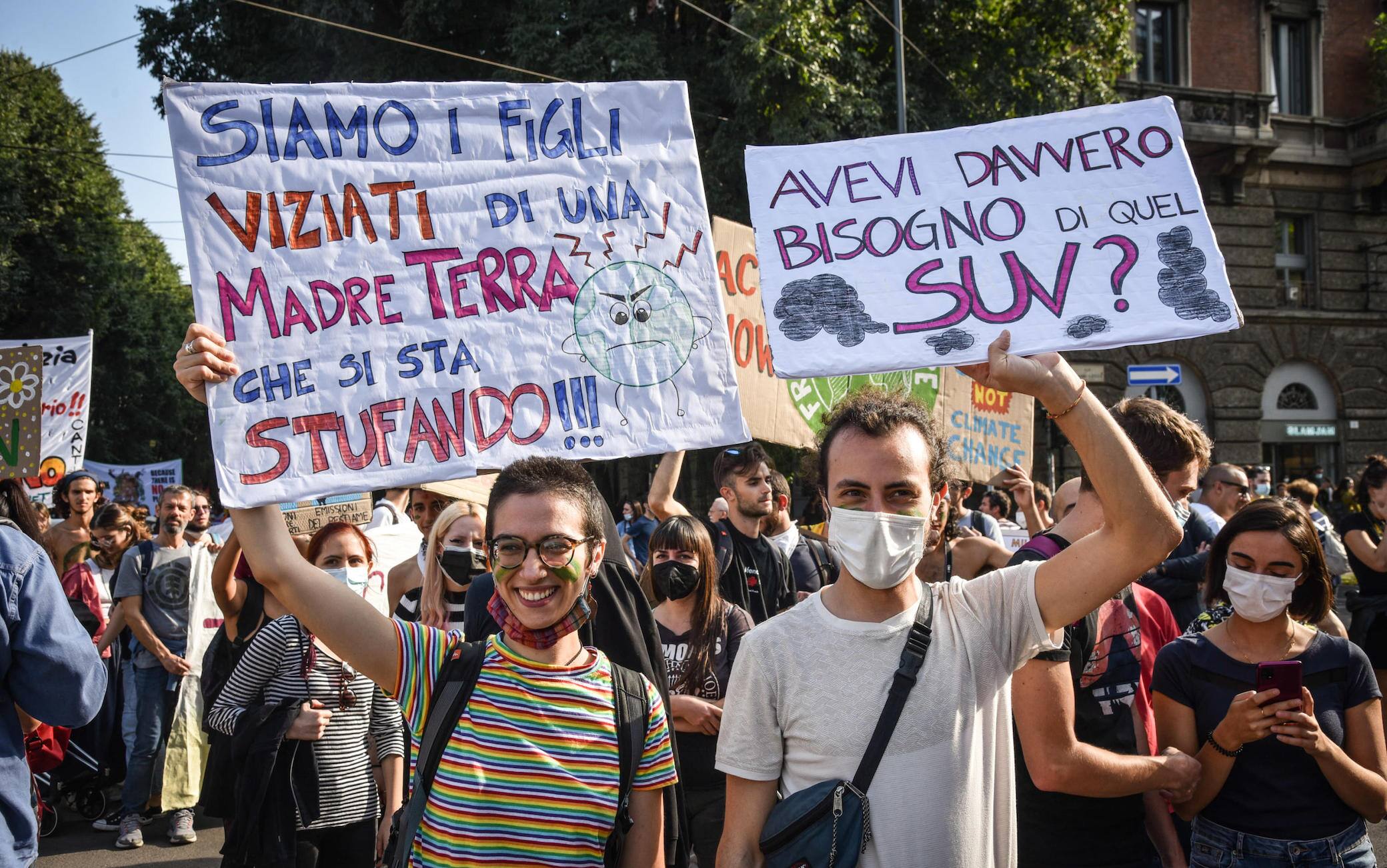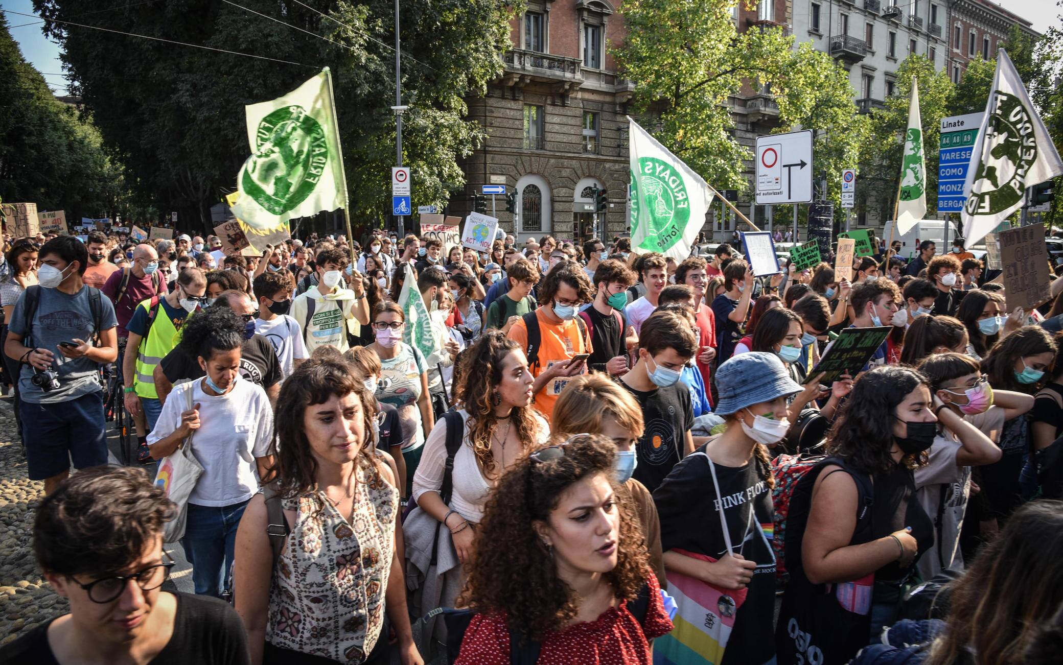 Sono circa 5mila le persone che stanno partecipando al nuovo corteo, lungo le vie di Milano, per chiedere giustizia climatica e per protestare contro l'immobilismo della politica e le grosse multinazionali. In strada sono scesi per la maggior parte giovani, ma anche bambini, che si sono ritrovati nel pomeriggio in piazza Cairoli. La manifestazione chiude la settimana dedicata al clima.