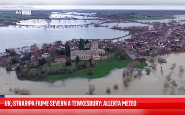 Il fiume Severn ha straripato attorno all’abbazia di Tewkesbury, in Gloucestershire, a causa...