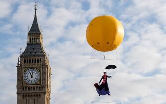 Il celebre personaggio ideato da Pamela Lyndon Travers è la testimonial di un’iniziativa per denunciare l’inquinamento dell’aria nella capitale britannica. Gli attivisti l’hanno fatta volare con una mongolfiera davanti al Big Ben, munita di mascherina sul viso