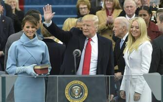 Ivanka Trump sceglie il 'total white', ad eccezione dei guanti neri. Il suo completo è firmato da Oscar de la Renta -