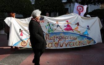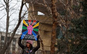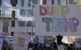 Un momento della "Marcia delle donne" contro il neo presidente degli Stati Uniti Donald Trump in Piazza della Rotonda a Roma -