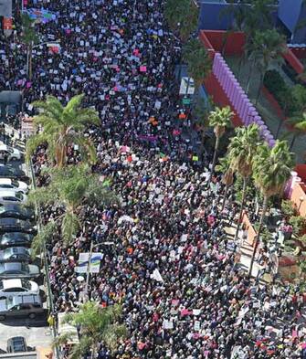 Le donne sono scese in strada anche a Los Angeles per protestare contro Donald Trump