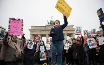 Mobilitazioni a Berlino davanti alla porta di Brandeburgo -