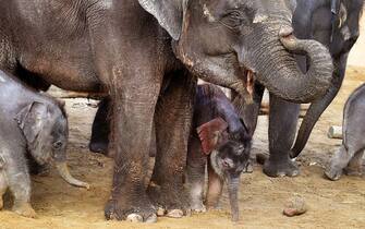 Primi momenti di esplorazione per Manari e la piccola, insieme ad altri elefantini nati da poco allo zoo -