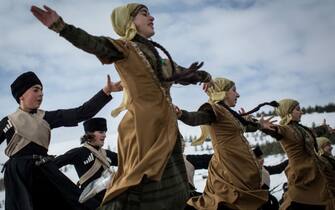 Il festival in cui si possono ammirare cavalli e cavalieri si è tenuto sabato 4 febbraio sul lago ghiacciato di Cildir, tra le province nordorientali di Ardahan e Kars, al confine con la Georgia -