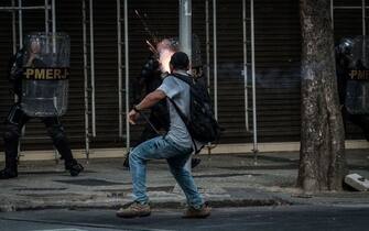 Diversi manifestanti con il volto coperto, verso le 15.30 ora locale (le 18.30 italiane), hanno cominciato a distruggere una serie di vetrine nei pressi del palazzo dell’Assemblea legislativa dello stato di Rio de Janeiro, per poi lanciare sassi e fuochi d’artificio nei confronti delle forze dell’ordine che erano state schierate a protezione dell’edificio. La polizia per disperdere i manifestanti avrebbe utilizzato anche proiettili di gomma -