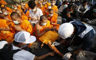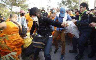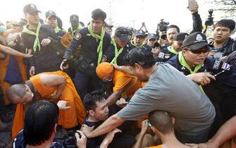 Almeno due poliziotti, numerosi monaci buddisti e loro sostenitori sono rimasti feriti negli scontri davanti al Dhammakaya Temple, nella periferia di Bangkok, in Thailandia -