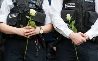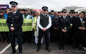 Tanti gli agenti di Polizia presenti alla marcia. Una delle vittime del killer è proprio un poliziotto, Keith Palmer, che Masood ha ucciso prima di essere a sua volta freddato -