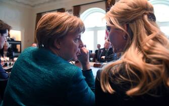 Oltre al ruolo ufficiale di impiegata governativa, Ivanka Trump sta subentrando sempre di più nel ruolo di vera first lady a Washington (nella foto, con Angela Merkel) -