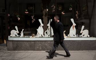 Anche i negozi del complesso hanno addobbato le proprie vetrine con coniglietti e fiori di pesco in perfetto tema pasquale -