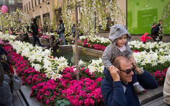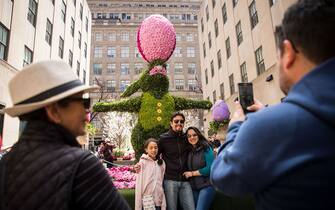 Il Rockfeller Center di New York cambia veste per l’arrivo della Pasqua: addobbi floreali e sculture vegetali decoreranno la struttura fino al prossimo 19 aprile -