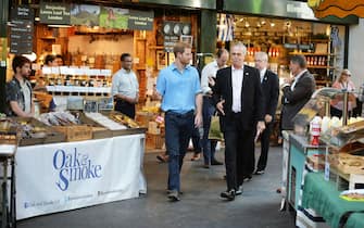 Il principe è arrivato al Borough Market il giorno dopo la riapertura ufficiale al pubblico. Le varie bancarelle sono infatti rimaste chiuse per 11 giorni dopo gli attentati del 3 giugno -
