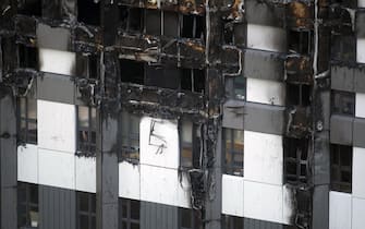 Uno dei lati del grattacielo di 24 piani dopo l’incendio -