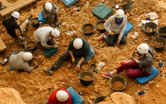 Nel sito i paleontologi spagnoli hanno rinvenuto anche il femore di un uomo vissuto 400mila anni fa: reperto che ha permesso di isolare il Dna umano più antico del mondo. Nella foto, archeologi scavano all'entrata della Cueva Mayor del sito di Atapuerca -