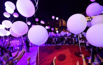 Nella foto, un momento del lancio dei palloncini bianchi organizzato in ricordo delle 86 vittime e dei feriti dell'attacco terroristico dello scorso anno -