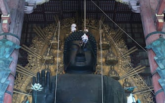 Giappone, l'annuale pulizia del Grande Buddha di Nara. FOTO