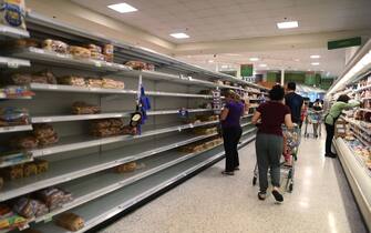Gli scaffali dei supermercati sono quasi vuoti dopo che i residenti hanno fatto scorta di cibo e acqua per l'arrivo dell'uragano -